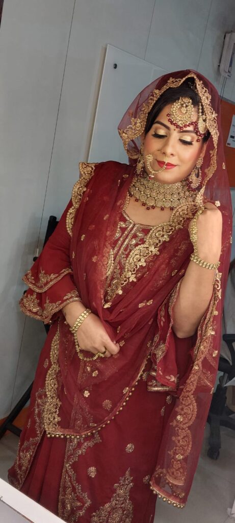 She has done two makeup courses: Basic Makeup Course from Lakme; Advance & Professional Makeup from VLCC. Through these courses she gained expertise in HD Makeup. Now she gives such a wonderful makeover that brings amazing smile on her client`s face.