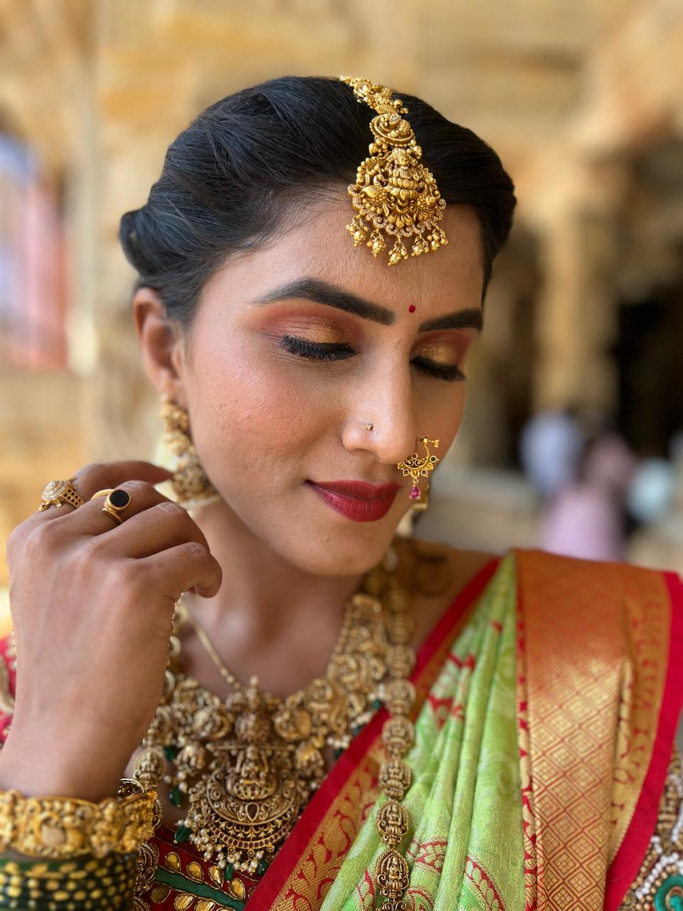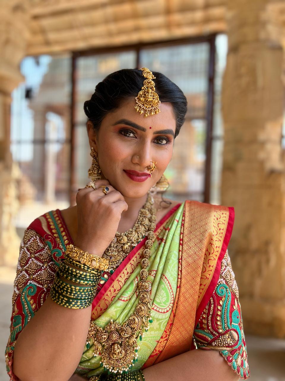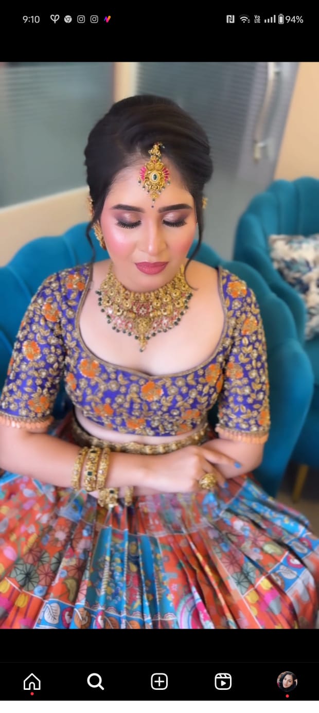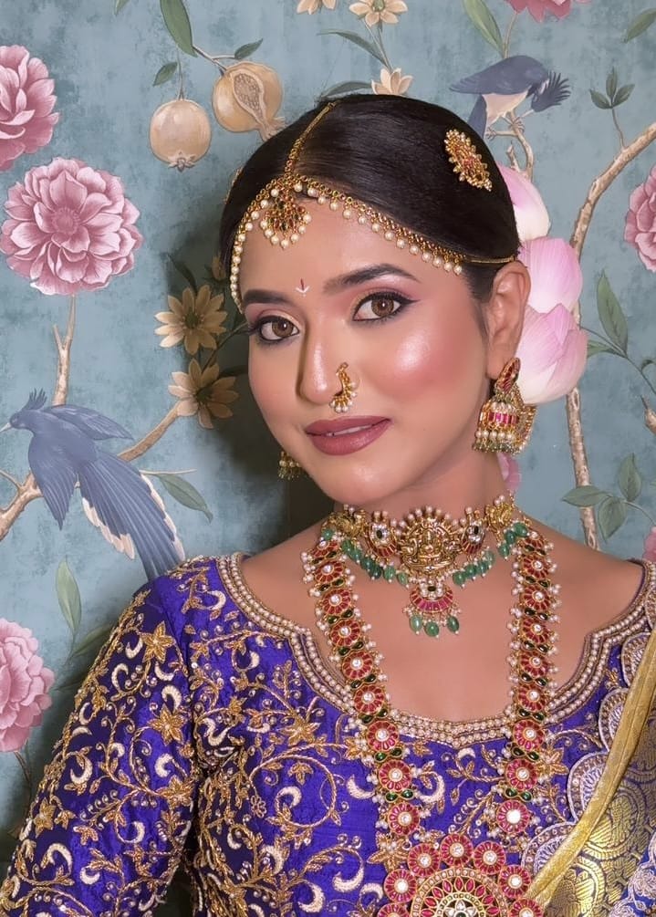 Swetha works with top professional brands including MAC, Huda Beauty, Fenty Beauty, PAC, and NARS, ensuring high-quality results suited for every skin tone. In addition to makeup, she also provides hairstyling and saree draping, making her a complete beauty expert for weddings and events.