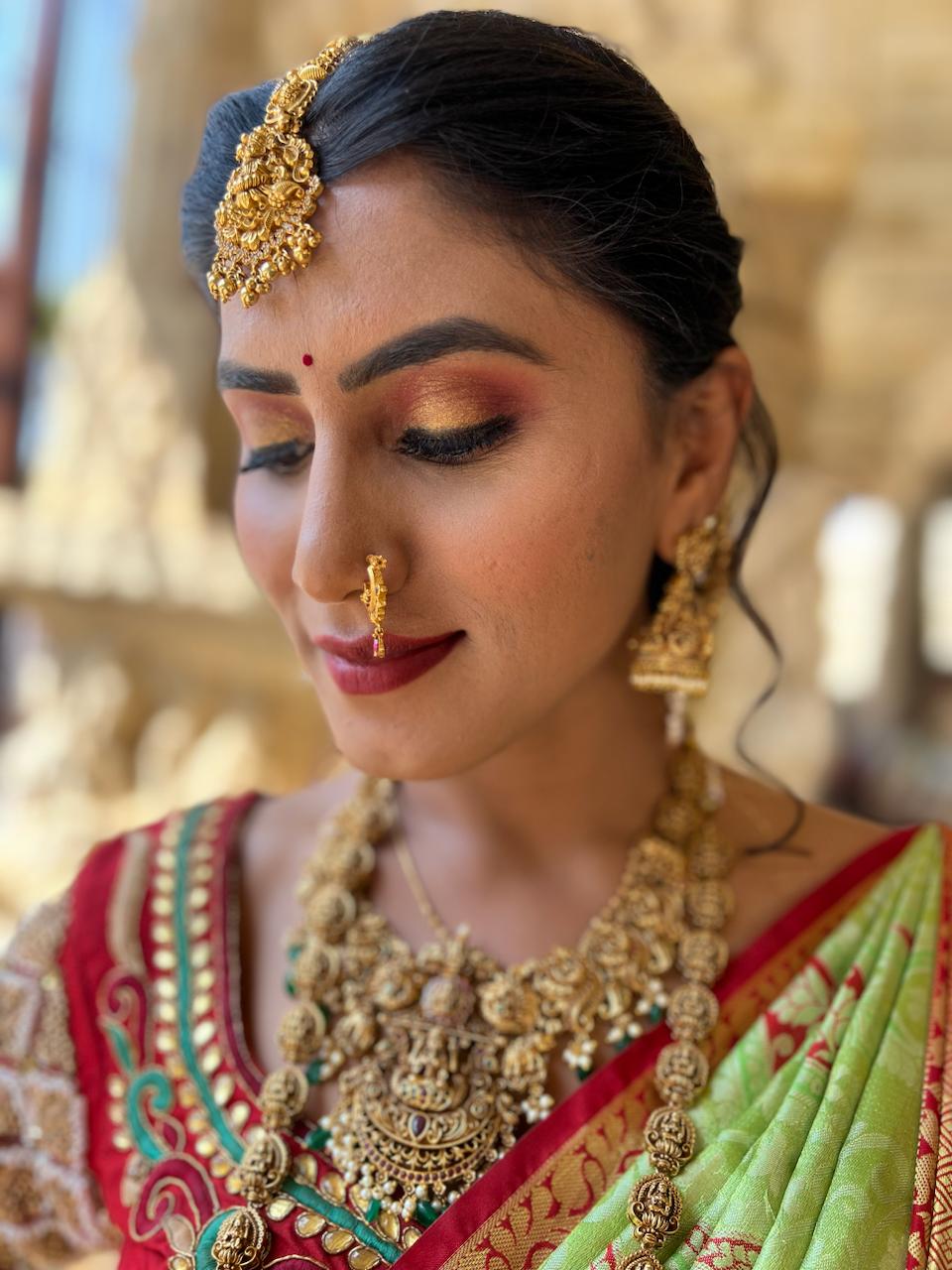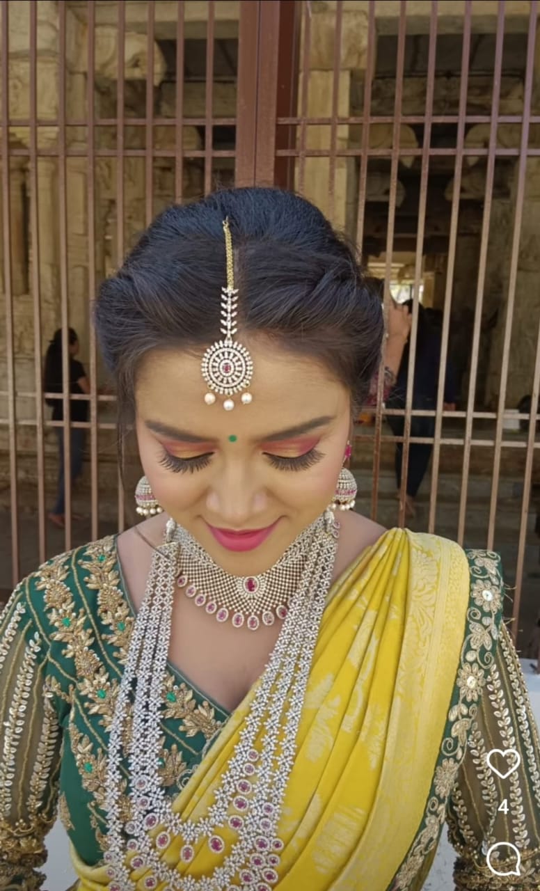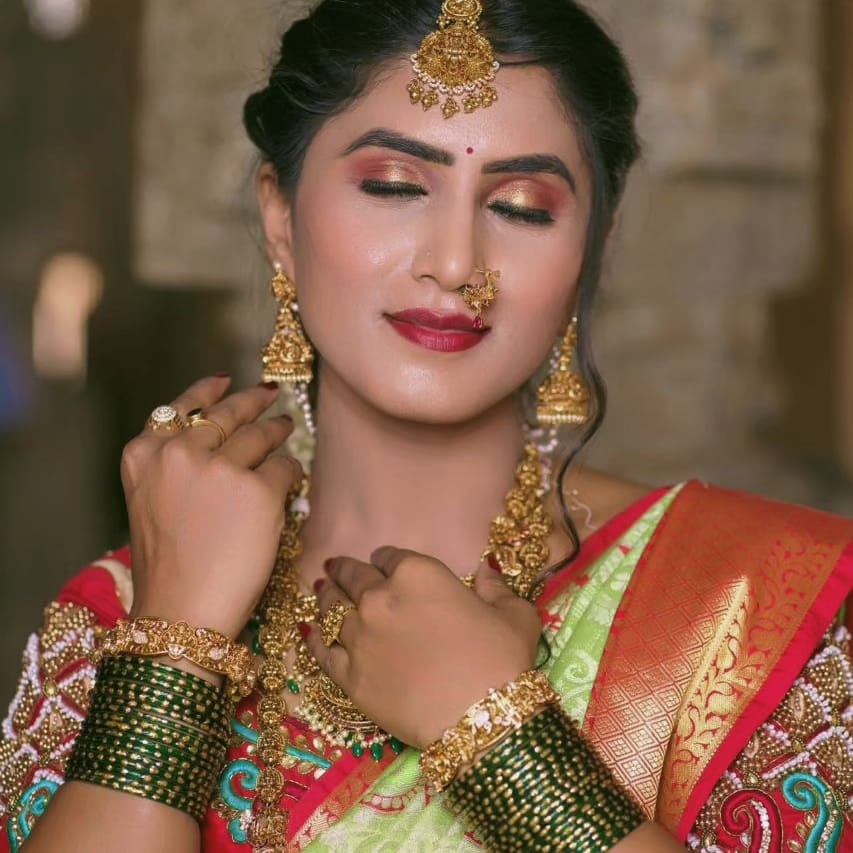 Swetha works with top professional brands including MAC, Huda Beauty, Fenty Beauty, PAC, and NARS, ensuring high-quality results suited for every skin tone. In addition to makeup, she also provides hairstyling and saree draping, making her a complete beauty expert for weddings and events.